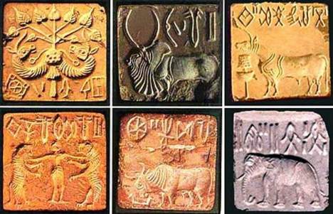 ****Ein Strengbeweis ließe sich allerdings erst führen, wenn es gelänge, die Schrift auf den gefundenen Täfelchen zu entziffern. Dikigoros hat zu mehreren Forschern Kontakt aufgenommen, die glauben, eine Lösung gefunden zu haben; aber so recht überzeugt war er von keiner einzigen. Es ist nicht mal sicher, ob es sich bei den Zeichen um Piktogramme handelt (dafür sind es eigentlich zu wenige unterschiedliche - aber das könnte auch daran liegen, daß man nicht genügend Täfelchen gefunden hat) oder um Lautzeichen (dafür sind es eigentlich zu viele unterschiedliche - obwohl die indischen Schriften ja weitaus mehr Laute haben als andere Sprachen, besonders wenn man von einer Silbenschrift ausgeht) oder gar um eine Mischform (wie sie heute nur noch das Japanische aufweist). Bei den letzteren beiden Alternativen käme als Hauptproblem hinzu, daß man nicht einmal weiß, um welche Sprache es sich handelt - d.h. nach welchen Lauten man überhaupt suchen soll. In Kreisen "patriotischer" Inder wird die These vertreten, daß es Sanskrit sein könnte; aber das wäre selbst dann ganz unwahrscheinlich, wenn die gesuchte Zivilisation ihren Ursprung nicht am Golf von Khambhāt gehabt hätte, sondern im Industal, denn dorthin kamen die "Aryer", die es sprachen, ja - jedenfalls nach derzeitigem Forschungsstand - erst Mitte des 2. Jahrtausends v.Chr.