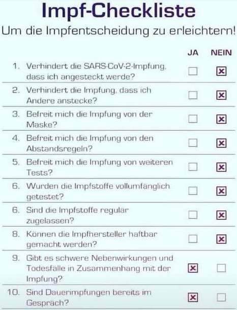 Gehören Sie zu den 52% der Bürger Deutschlands, die sich bereits komplett gegen SARS-CoV-2 haben impfen lassen? Ich respektiere Ihre Entscheidung. Ebenso akzeptiere ich allerdings, wenn sich jemand gegen eine Impfung entscheidet. Wer dies vor dem Hintergrund aller bekannten Fakten anders sieht, wer also Menschen dazu zwingen will, sich einem aus gutem Grund nicht existierenden Impfzwang zu unterwerfen, bewegt sich nahe am Totalitarismus. Tatsächlich stellt eine Corona-Infektion eine reale Gefahr für jene dar, die gesundheitlich stark vorbelastet sind oder sich aufgrund vorgerückten Alters mit einem anfälligen Immunsystem plagen. [...] Bei allen anderen stellt sich aber die Frage, was sie sich vom "Pieks" erhoffen.