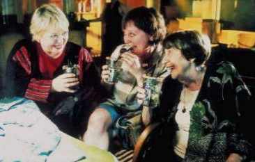 Moment mal, auf welchem Planeten leben wir da eigentlich? Eine mehr oder minder intakte Großfamilie mitten in Deutschland? Wo gibt's denn sowas? Ja, liebe Wessis, in der DDR gab es das noch; nicht etwa weil die Ossis mehr Familiensinn gehabt hätten, sondern weil sie aus der Not eine Tugend machen mußten: Wohnraum war knapp, wie alles, was vom Staat bewirtschaftet und den Untertanen nur gnadenhalber zugeteilt wurde, da mußten die Familien schon mal zusammen rücken, zumal alte Witwen. Wohlgemerkt, der Film spielt in der Gegenwart - anno 2002 -; aber so leicht läßt sich die Vergangenheit halt nicht abschütteln; auch die witzig gemeinte Antwort auf die Frage von früher, wie alt die DDR maximal werden könne - 65 Jahre, dann hätten die letzten ihrer Bürger in den Westen rüber gemacht (Rentner hatten ja Ausreisefreiheit, man hätte diese unnützen Fresser am liebsten sogar zwangsweise abgeschoben, damit der Westen ihre Renten zahlte) - ist falsch: Die DDR lebt in den Köpfen der Ossis weiter, und die sorgen dafür, daß sie auch in den Köpfen der nachgeborenen Generationen erhalten bleibt, sogar in verklärter Form, mit einem Nationalgefühl Ost, wie es das zu Zeiten der real existierenden DDR aller staatlichen Propaganda zum Trotz nie gegeben hatte. Dikigoros dachte früher, man müsse einfach nur abwarten, bis die letzten gelernten Ossis ausgestorben wären, um aus ihren Kindern normale Menschen zu machen; aber das war ein Irrtum: Echte Ossis sind nicht zu retten (ebenso wenig wie echte Kubaner :-) - die kann man, wie inzwischen nicht mehr nur böse Zungen behaupten, allein dadurch kurieren, daß man sie wieder in die Unabhängigkeit ent-läßt, eine schöne hohe Mauer drum herum baut und sie mitsamt ihrem mißratenen Nachwuchs sich selbst über-läßt. Jede Bundesregierung, die das angesichts der leeren Staatskassen unter-läßt, handelt kriminell. [Die BRD, liebe jüngere Nicht-Wessis und andere Nicht-Deutsche, die Ihr dies lest und Euch ob dieser Aussage aus Unwissenheit empören möget, war einmal - vor der "Wieder"-Vereinigung mit der DDR - das reichste Land Europas und eines der reichsten der Welt. Die "Wiedervereinigung" mit den Ossis hat Deutschland ruiniert und binnen weniger als einem Jahrzehnt zum ärmsten und am höchsten verschuldeten Land der EU gemacht.]