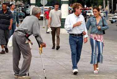 Was er damit meint, wird jeden Abend deutlich, wenn über der Uferpromenade von Havanna die Sonne untergeht. Dann bricht nahe der großen Touristenhotels und vor den Diskotheken die Zeit der Minderjährigen und Ehefrauen an, die den Touristen ihre Liebesdienste für ein paar Dollar anbieten. Der Dollar, seit der Revolution 1959 auf Kuba 35 Jahre lang offiziell so verhasst wie die USA selbst, wurde 1993 zum Retter des sozialistischen Modells erkoren. Auf dem Höhepunkt der Wirtschaftskrise nach dem Verlust der sowjetischen Unterstützung öffnete Castro der Währung des Erzfeindes Tür und Tor, und mit ihr kamen jährlich Hunderte Millionen Dollar an Auslandsüberweisungen der Miami-Kubaner und die großen europäischen Hotelketten ins Land. Auch für die Bevölkerung gab es Freiheiten. Plötzlich durften Kubaner in den früher nur Ausländern vorbehaltenen Devisenläden einkaufen, kleine Restaurants und Familienunterkünfte für Touristen eröffnen und Handwerksbetriebe einrichten. So nutzt Kuba den Kapitalismus, um den Kommunismus zu retten. Doch der Dollar schuf eine Zweiklassengesellschaft. Denjenigen, die Zugang zu Devisen haben, fehlt es wirtschaftlich an nichts. Diejenigen, die ohne sind, kämpfen täglich um ihren Lebensunterhalt. Gleichzeitig ist der Staat in weiten Teilen der Insel nicht in der Lage, elementare Dienste wie Wasser- und Stromversorgung oder den Nahverkehr sicherzustellen. Während über Havannas Straßen der eine oder andere Mercedes SLK fährt, ist in vielen Provinzstädten die Pferdekutsche das einzige öffentliche Verkehrsmittel. Von dem hehren Revolutionsideal der Gleichheit aller Kubaner ist 45 Jahre nach der Sturz des Diktators Fulgencio Batista wenig geblieben. Doch vor einigen Monaten hat Castro das ideologische Rad gedreht und Kurs auf die ursprünglichen Ideen der Revolution genommen. Der Staat verbannte den Dollar von der Insel, re-zentralisiert das Wirtschaftsleben und erstickt private Initiative dort, wo sie nicht unbedingt notwendig ist. Der Bannstrahl trifft nicht nur Familienrestaurants und Privatunterkünfte, die mit hohen Steuern belegt werden, sondern auch Clowns, die bei Kindergeburtstagen auftreten. Sie stellt wieder der Staat. Ausländische Unternehmer und Entwicklungshelfer beklagen die Zunahme bürokratischer Fesseln. Und die Zahl der Joint Ventures zwischen kubanischen und europäischen Unternehmen ist von rund 400 auf 300 gesunken. Neue Partnerschaften werden selten bewilligt. (Anm. Dikigoros: Wer die beantragt, muß eh bekloppt sein!) Der Staatschef schmiedet lieber neue Allianzen mit ideologisch verlässlicheren Partnern wie Venezuela und China. Castros Verbündeter Hugo Chávez liefert das dringend benötigte Öl zum Freundschaftspreis, Kuba zahlt mit Ärzten, Lehrern und der Ausbildung Tausender Venezolaner. Die Dimension der Kooperation erinnert an die Tage der sowjetischen Bruderhilfe. Und China steckt 500 Millionen Dollar in die Modernisierung der kubanischen Nickel-Industrie. Dank neuer Freunde, hoher Rohstoffpreise und zwei Millionen Touristen wähnt Castro die Wirtschaft so stark wie zuletzt vor 20 Jahren. Im November [2004] verbannte er zudem nach elf Jahren den Dollar von der Insel und ersetzte die Währung durch einen wertgleichen konvertiblen Peso. Binnen Wochen erhöhte die Zentralbank so ihr Devisenpolster um geschätzte 500 Millionen Dollar, weil die Bevölkerung ihre Ersparnisse brav an die Zentralbank ablieferte. Mindestens genauso wichtig war die Botschaft an den Erzfeind: Seht her, wir brauchen Euer Geld nicht! Auch der Eierkönig von Holguín fürchtet, dass er bald nicht mehr gebraucht wird. „Wenn die da oben den Eindruck haben, sie können es wieder selber, nehmen sie mir alles weg“, sagt Milton Rodriguez. Nachbemerkung Dikigoros: Wenn Friedrich Dürrenmatt das geahnt hätte, als er "Romulus der Große" schrieb...! Zwei Wochen, nachdem der Kölner Stadtanzeiger diesen wenig schmeichelhaften Artikel über den Staat des "máximo líder [größten Führer]" veröffentlicht hatte - also pünktlich zum 116. Geburtstag des "größten Feldherrn aller Zeiten" - entblödete sich die Frankfurter Rotschau, pardon Rundschau nicht, den gleichen Artikel unter dem Titel "Der Eierkönig von Holgún" zu veröffentlichen und mit dem salbungsvollen Hinweis zu versehen: "Unter Castro entwickelte Kuba eines der besten Bildungs-, aber auch Gesundheitssysteme der Welt." Dabei weiß doch jeder, der sich ein wenig in Kuba auskennt, daß das so genannte "Bildungssystem" ausschließlich der Indoktrination der Schüler und Studenten mit kommunistischem Gedankengut dient, und daß das Gesundheitssystem zwar für ausländische Touristen mit harter Valuta ganz ausgezeichnet ist - z.B. für Alkoholiker wie Diego Maradona, die dort eine Entziehungskur machen wollen -, für die einheimische Bevölkerung dagegen zwar kostenlos, aber katastrofal schlecht. Dafür ließ die FR das Foto mit dem Bettler weg. zurück zu La vida pasa - Kubaner küssen besser |