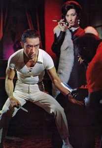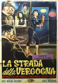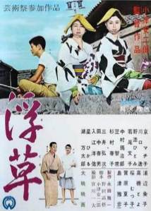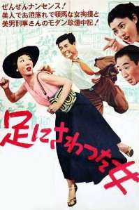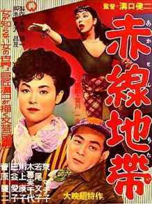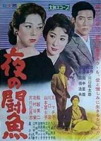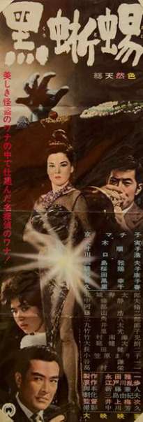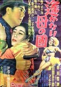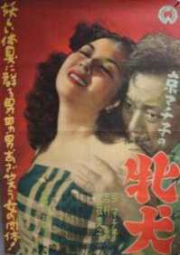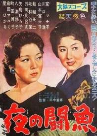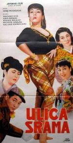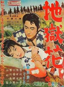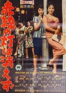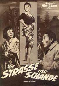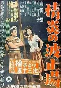 Was fällt Euch auf? Richtig: Das Kinoplakat ist irreführend, denn da steht ein Gaijin mit einer westlich gekleideten Nutte am Kai; das Foto aus dem Film zeigt dagegen einen Japaner und eine Frau in japanischer Tracht. (Westlich an der Szene ist nur die Whisky-Flasche, und die steht auf einem niedrigen japanischen Tischchen :-) |