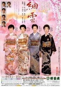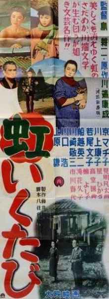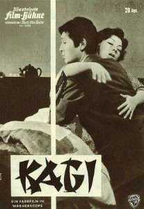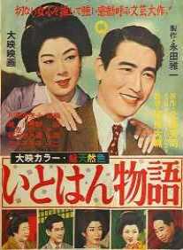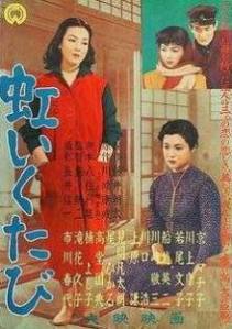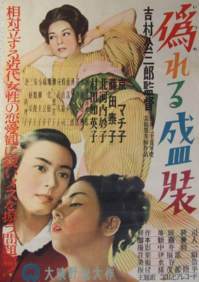 Auf dem alten Kinoplakat von 1952 wurden die - von oben nach unten zu lesenden - Spalten noch von rechts nach links angeordnet. (Auf dem von 1962 auch noch; man sieht es allerdings nicht am Titel, sondern nur an der Besetzungsliste; die beiden Hauptdarstellerinnen - in rot - stehen ganz rechts, Kyō zuerst.) |