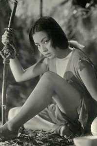 *Das wird mit dem selben Kanji geschrieben wie "Tōkyō" und "Kyōto". Warum nannte sie sich so, wenn sie doch gar nicht aus der Hauptstadt kam? Nun, Kyōto und Ōsaka sind längst zusammen gewachsen und werden als solche ebenfalls mit diesem Kanji geschrieben. (Aber ganz anders ausgesprochen - ein typischer Zug des Japanischen, der Ausländern oft Schwierigkeiten bereitet: "hara" + "kiri" = "seppuku"; "Fuji" + "yama" = "Fujisan"; "Kyōto" + "Ōsaka" = "Keihan" :-)************* Mit nur sechs Jahren Schulbesuch relativ unverbildet, sprach Kyō ganz typisches "Kansai" - die Sprache Ōsakas, Kyōtos und Kōbes - heute meist als "Dialekt" bezeichnet. Das wird ihr indes nicht gerecht: Diese Sprache war bis ins 19. Jahrhundert Standard-Japanisch, genauer gesagt bis zur "Meiji-Restauration", als die Sprache von Edo (dem heutigen Tōkyō) diese Stellung übernahm. Sprecher des Kansai sind daher prädestiniert für Rollen in Historien-Filmen [auf Japanisch etwas ungenau als "jidaigeki" bezeichnet, da die Japaner ihre Geschichte nach "Zeitaltern" berechnen.] Wer alle Filme mit Kyō gesehen hat, hat zugleich eine Reise durch die fast komplette Geschichte Japans - und große Teile der Geschichte Chinas - absolviert; deshalb behandelt Dikigoros hier auch Historien-Filme, die außerhalb Japans kaum bekannt sind. Ein mittelalterlicher Samurai hätte das heutige Japanisch wohl als nuschelig empfunden und nur schwer verständlich. (Etwa wie ein Brasilianer das heute im Mutterland