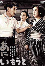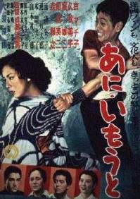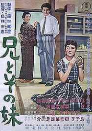 Auch hier lohnt ein genauer Blick: Das alte Kinoplakat weist zwei Kanji auf, die man damals schon im Kindergarten lernte: "Älterer Bruder" hat ein eigenes Kanji, "jüngere Schwester" setzt sich zusammen aus "Frau" und "noch nicht". [Im alten Japan wurden die Töchter streng nach Reihenfolge der Geburt verheiratet (Alter vor Schönheit :-) - die jüngere Schwester war also im Zweifel noch nicht verheiratet.] |