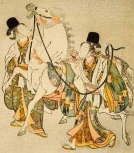 **Im Film wird ausdrücklich - in einer Diskussion zwischen Kesa und ihrem Mann, dem Titelverteidiger - durch letzteren heraus gestellt, daß es sich dabei um eine quasi-religiöse Zeremonie von allergrößter Bedeutung handele. Na ja... Das Pferd war zwar Reittier der Göttin Amaterasu; aber das Rennen wirkt doch eher weltlich - schon damals, als der Film spielen soll. Und heute erst recht: Da hat man den Eindruck, daß es dabei nicht mehr um die Verehrung der Göttin Amaterasu geht, sondern vielmehr um die des Gottes Mammon - in keinem anderen Land der Welt wird so viel Geld auf Pferderennen gewettet wie in Japan.