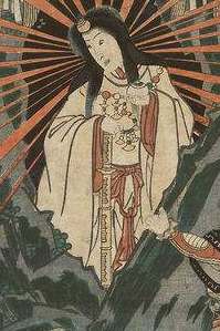 Caveat: Anderswo werdet Ihr das anders lesen, weil zweierlei - eigentlich sogar dreierlei - ständig durcheinander geworfen wird (übrigen auch von vielen heutigen Japanern). Bekanntlich gibt es in Japan zwei Religionen nebeneinander: Zuerst das, was im Westen "Shintoismus" genannt wird - dorthin gehören Amaterasu und ihr "Shinme", auf das Ihr Denkmäler vor jedem Shintō-Tempel in Japan findet. Dann das, was im Westen "Buddhismus" genannt wird - den haben sich die Japaner im frühen Mittelalter von den Chinesen aufs Auge drücken lassen, und zwar in deren