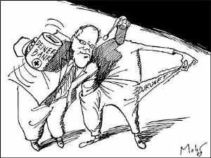 Am meisten profitierten Spanien und Portugal, fast 100 Jahre lang, die man folgerichtig "Siglo de Oro [Jahrhundert des Goldes]" nannte (manche Historiker, vor allem in Deutschland, die auf der Schule Mengenleere statt Rechnen hatten, kommen sogar auf knapp 200 Jahre :-); dann waren beide Länder von Hunger, Armut und Inflation ruiniert, denn Gold und Silber konnte man nicht essen, sondern es nur zu Geldstücken prägen, und der wundersamen Edelmetall- und Geldvermehrung stand keine Vermehrung gleichwertigen Waren gegenüber (von den Gewürzen mal abgesehen, aber auch davon konnte man letztlich nicht satt werden), so daß die Preise für Konsumgüter immer mehr anstiegen - wer wollte schon so blöd sein und noch etwas produzieren, wenn er statt dessen einfach nur "Welthandel" zu treiben brauchte? Spanien und Portugal erklärten den Staatsbankrott - Spanien zum ersten Mal 1557, zum zweiten Mal 1560, zum dritten Mal 1575, aber da erlangte es jeweils noch ein Moratorium von seinen Haupt-Gläubigern, den multinationalen Handels- und Bank-Konzernen Fugger und Welser. Erst beim vierten Mal, 1627, also 94 Jahre nach Eroberung der Inka-Hauptstadt Cuzco und ihres Goldes durch Pizarro, war endgültig Schluß mit dem "Goldenen Zeitalter" auf Pump (das zwar viele große Dichter hervor gebracht hatte, aber keinen scharfen Beobachter wie Mark Twain, der es als bloß "vergoldetes Zeitalter" entlarvt hätte, geschweige denn einen, der rechtzeitig vor dieser Entwicklung gewarnt hätte - aber auf den hätte wohl eh niemand gehört :-). Denn nun konnten auch die Multis nicht mehr helfen: Die Welser hatten schon 1614 bankrott gemacht; und die Fugger hatten ihre Geschäfte nach und nach liquidiert und sich auf die Rittergüter zurück gezogen, die sie von den traurigen Resten ihres einstigen Reichtums gerade noch hatten kaufen können (nicht ohne zuvor die Hanse ruiniert zu haben, aber das ist eine andere Geschichte). Spanien riß Portugal - mit dem es seit 1580 in Personal-Union unter Felipe II vereint war - mit in den Abgrund. Kurzum, die Epoche des Frühkapitalismus fand ein ziemlich unrühmliches Ende. Aber das war sicher nicht Marco Polos Schuld. * * * * *![]() Es blieb den gutmenschlichen Deppen, pardon "Wissenschaftlern" des 20. Jahrhunderts vorbehalten, diese Tatsachen - und ihre Folgen - zu verdrängen, und statt dessen um müßige Fragen zu streiten wie die, ob Marco Polo irgendwo persönlich war oder nicht oder doch. Wie heißt es so schön: "Die größten Irrtümer in der Geschichte entstehen durch falsche Fragestellungen." Aber geht uns der ganze andere Krempel, vom Seeweg nach Indien bis zu den portugiesischen Kolonien, denn heute, im Zeitalter der Flugreisen und der Dekolonisierung, überhaupt noch etwas an? Und ob, liebe Leser, und ob. Wir leben in einer Zeit, da die Themen "Eroberung der Welt[märkte]" und "Globalisierung" wieder so aktuell sind wie nie zuvor, seit die Welser bankrott machten und die Fugger aufgaben. Wieder wird die Welt verteilt, halt nicht mehr in Form von Kolonien, sondern von Absatzmärkten, und nicht mehr zwischen Nationalstaaten, sondern zwischen multinationalen Konzernen. Und wie Ihr oben seht, sind die Symptome wieder die gleichen: Wieder schuften sich ein paar blöde Eingeborene kaputt, um Rohstoffe auszubeuten; anschließend lassen sie sich bei deren Verkauf wieder von cleveren Welt-Händlern über den Tisch ziehen; und zum Schluß wird wieder alles mit Billiglohn-Sklaven verarbeitet - und China steht dabei wieder ganz an der Spitze. (Ist der magere Drache auf rotem Grund, den Dikigoros da oben ausgegraben hat, nicht ein schönes Sinnbild für diese Entwicklung?) Und die Folgen? Werden die etwa auch wieder die gleichen sein? Unsere Politiker haben so viel von Karl Marx übernommen - zumeist den Unsinn -, daß sie darob die wenigen richtigen - und wichtigen - Lehrsätze schlicht vergessen haben, z.B. daß ein Staat seine "Produktionsmittel" keinesfalls aus der Hand geben darf, wenn er überleben will. Werden also die Staaten, die jetzt Kapital, Know-how und Arbeitsplätze in die "Dritte Welt" exportieren, genauso enden wie Spanien und Portugal am Ende des "Siglo de Oro"? Ach was, solche Fragestellungen will niemand hören, also wollen wir sie tunlichst verdrängen. Lernt und lehrt bloß nichts aus der Geschichte, liebe Fach-Historiker, denn Ihr werdet ja von den Politikern, die bei der Inszenierung dieser neuen Globalisierung massiv gegen jene eherne Marx'sche Regel verstoßen haben, besoldet, um ihnen nach dem Mund zu schreiben! Tröstet Euch mit der Gewißheit, daß die "Manager" (das kommt übrigens vom italienischen Wort "maneggiare", was ursprünglich soviel bedeutete wie "manipulieren und vermurksen"), wenn sie das Staatsschiff und/oder die Firma aufs Riff gesteuert haben, heutzutage wenigstens einen "Golden handshake" bekommen, gewissermaßen zur Belohnung, und nicht hingerichtet werden, wie damals in jener finsteren Zeit. Denkt immer an den schönen Satz: "Wes' Brot ich ess', des' Lied ich sing'", verteidigt die Globalisierung und streut dem dummen Volk tüchtig Sand in die Augen, damit es Euch in die Falle geht und die da oben "kreativ" weiter machen können wie bisher - auf daß sich die Geschichte wiederhole.