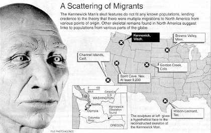 Nachtrag zum Exkurs. Es geht weiter, liebe Leser, und es bleibt spannend. Während die "Wissenschaftler" und die Lobbyisten in den Medien und vor Gericht lautstark um das Skelett des "Kennewick man" stritten, beschäftigte sich ein junger britischer Archäologe - Bruce Bradley - heimlich, still und leise mit einer unscheinbaren Lanzenspitze, die man im selben Jahr in Virginia gefunden hatte. Acht Jahre später - anno 2004 - legte er seine Ergebnisse vor, nebst einer ebenso kühnen wie schlüssigen Hypothese über ihren Ursprung: Das Ding war rund 17.000 Jahre alt und... es stammte offenbar aus Europa, ähnelte jedenfalls verblüffend Lanzenspitzen, die man dort - und bisher nur dort - gefunden hatte, genauer gesagt am Golf von Biscaya. 15.000 v.C. herrschte in Europa Eiszeit; aber der Südteil der Biscaya wurde von den Ausläufern des Golfstroms wohl so weit erwärmt, daß an seinem Ufer noch Menschen [über]leben konnten. (Das stimmt nebenbei auch mit den Ergebnissen der viel geschmähten Gen-Forschung überein, wonach die Basken das älteste Volk Europas sind, aber das ist eine andere Geschichte.) Einige von ihnen, so Bradley, gelangten vermutlich am Südrand des Eises entlang - das damals Europa und Nordamerika verband - bis an die Ufer des letzteren und setzten sich dort fest. (Die Genetiker haben inzwischen auch baskische Gene bei einigen Indianer-Stämmen gefunden, um auch das noch nachzutragen. Wenn Dikigoros von "Ausrottung" spricht, meint er damit natürlich nur die Ausrottung der reinrassigen Europäer; der Vorgang dürfte so abgelaufen sein, wie "Vernichtungskriege" überall und zu allen Zeiten abliefen: Die Männer der Unterlegenen wurden getötet, die Frauen vergewaltigt und/oder als Beute mitgenommen; und wenn daraus Kinder entstanden, die man überleben ließ, dann pflanzte sich ein Teil ihrer Gene eben fort und blieb erhalten.) Diese These ist nicht nur bahnbrechend, sie schließt auch die Richtigkeit der anderen These nicht aus; denn es ist durchaus denkbar, daß Menschen mehr als einmal von Europa nach Amerika gelangt sind. Die einzige These, die nicht mehr haltbar ist, ist wohl die, daß die "Indianer" die Ureinwohner Amerikas waren. Nachtrag zum Exkurs Ende.