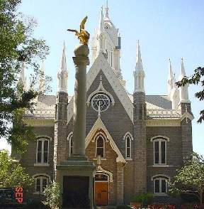 Nun war es eine Sache, lebend zum großen Salzsee zu kommen, und eine andere, dort auf Dauer zu überleben. Nicht umsonst hatten bisher weder die USA noch Mexiko echtes Interesse an jenem Gebiet gehabt; und die paar Indianer, nach denen der Staat "Utah" später benannt werden sollte, konnten dort auch nur als Nomaden existieren, denn Seßhaftigkeit setzt Ackerbau voraus, und dort wuchs ja nichts. Noch nicht, denn die Mormonen, die das Gebiet "Deseret" [Wüstien]" - später gaben sie diesen Namen auch ihrem Wappentier, der Biene - und ihre Stadt am Salzsee wie gesagt "Zion" nannten (und nennen), erfanden die künstliche Bewässerung. [Ja, liebe Leser, anderswo auf der Welt gab es die schon viel länger; aber in Nordamerika waren die Mormonen die ersten, die sie betrieben.] Im Frühjahr 1848 stand die erste Winterweizenernte an. Nun kommen wir zu einer Episode, welche die Geschichte der Mormonen in vorteilhafter Weise von den vielen z.T. recht albernen Märchen anderer Glaubensgemeinschaften, wie denen der Juden und der Christen - die sich gleichwohl etwas Besseres dünken - abhebt. Ihr kennt sicher alle aus der Bibel die Szene, als eine Taube vom Himmel steigt, als Jesus gerade im Jordan herum planscht, und daher flötet: "Dies ist mein geliebter Sohn, an dem ich mein Wohlgefallen habe." Was lernen wir daraus? Daß die Taube der Heilige Geist war? Na, wenn Ihr das glaubt, und wenn Ihr das für seriös haltet... Von dem Spruch konnte freilich niemand abbeißen. (Aber dafür gab es ja die wundersame Brotvermehrung, und hatte nicht schon Mosche die Juden durch die Wüste geführt, wo sie nicht verhungerten, weil es unterwegs Manna regnete?) Die Mormonen hatten freilich ganz andere Sorgen; denn plötzlich sahen sie sich einer Heuschreckenplage gegenüber. Das wäre das Ende gewesen, denn dagegen gab es keine Abwehr (die Pestizide waren noch nicht erfunden). Da stieg eine Taube vom Himmel herab, pardon, da kamen Schwärme von Möwen vom nahen Salzsee angeflogen und ließen sich die leckeren Heuschrecken gut munden. Die Mormonen dankten es ihnen ewig; ihr größtes und schönstes Denkmal errichteten sie keinem Menschen, keinem Engel und keinem Gott, sondern zwei Vögeln - einem goldenen Möwenpaar. Und fortan zweifelte erst recht keiner von ihnen mehr daran, von Gott ins gelobte Land geführt worden zu sein.