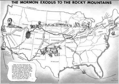 Brigham Young, der 1845 die Nachfolge seines Schwagers (unter den vielen Frauen, die Joe Smith geheiratet hatte, war auch eine Schwester Youngs) antrat, war ein anderes Kaliber. [Dikigoros stellt ihn sich vor als einen Typen wie "Oom" Paulus Krüger, den südafrikanischen Burenführer.] Er erkannte, daß die Mormonen in Illinois - oder überhaupt im Osten - schwerlich ihre Lebensweise würden bewahren können, sondern dort langsam aber sicher untergehen mußten. Er erkannte auch, daß es keinen Zweck hatte, einfach weg zu laufen irgendwo hin, wo auch andere früher oder später nachkämen, wie Oregon (das bis 1846 noch britisch war, und zu dem auch der heutige Bundesstaat Washington gehörte), das damals so populär war, daß man den großen Pfad (mehr war es noch nicht), der von Independence/Missouri den Platte River, den Snake River und den Columbia River entlang bis zum Pazifik führte, als "Oregon Trail" bezeichnete. Man konnte natürlich auch etwas weiter nördlich starten, z.B. von Council Bluffs/Iowa (ebenfalls am Missouri gelegen), wohin die Mormonen aus Nauvoo geflohen waren. Von dort ging es jedenfalls durch das heutige Nebraska und das heutige Wyoming (dort lag die letzte Außenstation der "Zivilisation", Fort Laramie) bis zum "Süd-Paß", dem breitesten, "nur" knapp 2.500 m hohen und somit bequemsten Paß über die Rocky Mountains. (Der nördlicher gelegene Togwatee-Paß, über den heute die Bundesautobahn 287 führt, ist immerhin rund 2.900 m hoch.) Hier nahmen die mutigsten Trecker eine Abkürzung direkt nach Westen, über Marbleton und Afton; die etwas weniger mutigen warteten bis zu einer Weggabelung, die sie einfach nur so ("Parting of the Ways") nannten, um nach Südwesten abzubiegen, über das kleine "Rocky Gap" bis ans Westende der "Sublette"-Abkürzung (die nach ihrem französischen Entdecker so genannt wurde; "West End" heißt heute "Cokeville" - damals konnte man sich nach den Strapazen freilich noch nicht mit dem gleichnamigen Getränk erfrischen :-). Das sparte immerhin rund 100 Meilen - und 160 km mehr oder weniger durchs Gebirge zu ziehen machte schon etwas aus, für Mensch und Material. (Etwas weiter, in der Gegend nördlich vom Bärensee, schon im heutigen Staate Idaho, blieben übrigens viele Franzosen hängen, wie man noch heute an den Ortsnamen sieht: Paris, St. Charles, Montpelier...) Die große Masse aber zog weiter Richtung Süd-Südwest, nach Fort Bridger, dem letzten großen Verpflegungs-Depot vor Oregon. Von da an ging es weiter Richtung Nordwest bis ins Zielgebiet - wenn man wollte.