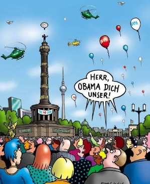 Die „Obamamania“, die Begeisterung für den afro-amerikanischen Kandidaten der Demokratischen Partei, habe sich der Deutschen bemächtigt, heißt es sogar in amerikanischen Medien. Ungewöhnlich wäre das nicht, ist hierzulande die Heilserwartung doch stets hochgeschraubt, wenn eine charismatische Persönlichkeit auftaucht, sei es