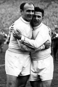 *Ein müßiger Streit, denn "Doping" wurde erst 1967 verboten, und zunächst nur für Radfahrer. Selbst wenn die Spieler der DFB-Auswahl also gedopt gewesen und dies heraus gekommen wäre, hätte es keinerlei Auswirkungen auf den Titelgewinn gehabt. **Dies war nicht der erste Fall seiner Art. Bereits 1950 war der zwangsmagyarisierte Slowake Ladislav ("László") Kubala (1927-2002) über Österreich nach Spanien geflohen und daraufhin ebenfalls gesperrt worden - nicht von der UEFA, die es damals noch nicht gab, sondern von der FIFA. Ab 1951 trug er maßgeblich zum Aufstieg des FC Barcelona an die Fußball-Weltspitze bei. Wie Puskás wurde auch Kubala nach Beendigung seiner aktiven Karriere Trainer; anders als Puskás kehrte er jedoch nie nach Ungarn zurück. ***Die "Internationale Föderation für Fußball-Historie und Statistik" wurde 1984 von einem gewissen Alfredo Pöge in Leipzig gegründet, als Verein dänischen (!) Rechts. Ein Jahr später übersiedelten beide - der Verein und sein Gründer - nach Wiesbaden, wo es ihnen gelang, ADIDAS als Sponsor und den Privatsender RTL als Plattform zu gewinnen. Es ist offensichtlich, daß Spieler, die Fußballstiefel von der Konkurrenz trugen - wie Puskás - bei dieser undurchsichtigen "Wahl" im Nachteil waren. Von den 60 Plazierten kennt Dikigoros ein knappes Drittel nicht mal dem Namen nach. (Er ist zwar kein Fußball-"Kenner", hat aber immerhin schon mal von Leuten wie Bernd Schuster und Zineddin Zidane gehört - Pöge & Co. offenbar nicht :-) Di Stéfano war zwar teilweise italienischer Abstammung und spielte lange Zeit in Europa, aber das gilt auch für den nicht berücksichtigten Diego Maradona (wie überhaupt für fast alle großen argentinischen Fußballer, auch noch im 21. Jahrhundert, z.B. Leo ["Lionel"] Messi); über Beckenbauer kann man streiten; aber die Erstplazierung Cruijffs ist ein Witz: Abgesehen davon, daß er nur wenige Jahre auf höchstem Niveau spielte und nie einen großen internationalen Titel gewann (was er mit di Stéfano gemeinsam hatte; er wurde weder Welt- noch Europa-Meister, nicht einmal Olympia-Sieger), mangelte es ihm an dem, woran man Spitzen-Fußballer - zumal Stürmer - für gewöhnlich mißt, nämlich an einer überragenden Tor-Ausbeute (was er mit Beckenbauer gemeinsam hatte). Bei objektiver Betrachtung wäre Cruijff in etwa dort einzuordnen, wohin ihn seine Rücken-Nr. - 14 - verwies, aber sicher nicht vor Puskás, der auch als einziger der hier Genannten zu einer politischen Integrationsfigur für "sein" Land wurde, während di Stefano für drei verschiedene Staaten "National"-Spieler war, Beckenbauer wegen seines USA-Engagements 1978 als "Vaterlands-Verräter" aus der deutschen Nationalelf - die diese Bezeichnung damals noch verdiente - ausgeschlossen wurde und Cruijff mit der Begründung, im "faschistischen" Argentinien nicht spielen zu wollen, sich weigerte, bei der WM 1978 für die Niederlande anzutreten. (Tatsächlich fühlte er sich wohl längst als Katalane - von der Weigerung der Niederländer, ihm eine Extrawurst in Sachen Werbevertrag zu braten, ganz abgesehen :-) weiter zu Pelé zurück zu Sportler des 20. Jahrhunderts heim zu Von der Wiege bis zur Bahre heim zu Reisen durch die Vergangenheit |