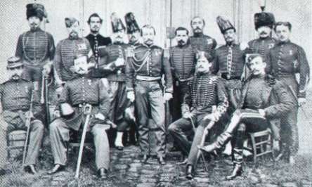 Shimonoseki angekrochen kommen und in Paris um die Entsendung einiger tüchtiger, fernost-erfahrener Militär-Instrukteure bitten. Napoléon schickt ihnen prompt 15 Officiere, 10 Sergeanten und 2 Poilus (als Stiefelputzer - auch das will gelernt sein :-). [Auf dem Foto oben seht Ihr natürlich nur die Herren Officiere.] Einer von ihnen ist der Premier-Lieutenant der berittenen Garde-Artillerie Jules Brunet, dessen Carriere sich irgendwie festgefahren hatte, obwohl er im mexikanischen Krieg tapfer - aber glücklos - kämpfte: fast 30, und immer noch nicht zum Capitain befördert. Aber jetzt wird er es endlich.
