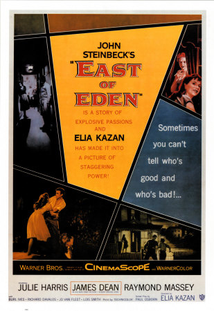 Statt dessen veröffentlichte Steinbeck 1952 nochmal einen langen Roman - seinen längsten nach "Früchte des Zorns" - über die jüngste Geschichte der USA: "Jenseits von Eden". Der überraschende Erfolg kam aber weniger mit diesem Buch - über das man eigentlich nur Schlechtes sagen kann. (Lest nur mal seine einleitenden Bemerkungen über "die" Indianer - Dikigoros hat nichts gegen "Rassismus", wenn er denn fundiert ist; aber was Steinbeck da schreibt, zeugt einfach nur von Unkenntnis -, und achtet mal darauf, liebe Leserinnen, welch schlechtes Licht er da auf die Frauen im allgemeinen und auf die Mutter von Kain und Abel, pardon Caleb und Aaron im besonderen wirft, die er zwar "Cathy" nennt, die jedoch für Eva steht, die Frau schlechthin; schließlich spielt die Geschichte im übertragenen Sinne im Garten Eden! Findet Ihr Euch da wieder?) Den großen Familiensagas eines Knut Hamsun, eines Trygve Gulbranssen oder eines Hans Renhing kann "Jenseits von Eden" nicht das Wasser reichen. Der Ruhm kam vielmehr mit dessen Verfilmung - obwohl die eher noch schlechter war; aber weil die Hauptrolle der beliebte Schauspieler James Dean spielte, der kurz darauf zu Tode kam, wurde er völlig unverdient zum Mythos. (Inzwischen sind auch alle anderen Bücher Steinbecks verfilmt worden, viele sogar mehrfach, und fast alle besser als "Jenseits von Eden"; aber keine Verfilmung hatte auch nur annähernd den gleichen Erfolg - der Geschmack des Kino-Publikums ist schon manchmal unergründlich :-)
