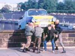 Aber Ende 2011 wurde die - ebenfalls reprivatisierte - Ohratalbahn, die von Gotha nach Gräfenroda führte, still gelegt, und der Besucherstrom verebbte, obwohl der Eintritt mit nur 2.- Euro wahrlich nicht zu teuer ist. Die Gräfenroder sind verbittert; sie haben die Schnauze von den bösen Wessis, die ihnen das angeblich alles eingebrockt haben, gestrichen voll. Längst hat die CDU - die nach der Wende die absolute Mehrheit im Stadtrat hatte - die meisten ihrer Wähler an unabhängige Wählergemeinschaften verloren, und die SPD, die einst an 2. Stelle kam, an die PDS - nachmals "Die Linke" -, die heute den Bürgermeister stellt, wie in guten, alten DDR-Zeiten. So schließt sich der Kreis, auch mit dem Leitmotiv der Go-Trabi-Go-Filme: Die Wessis sind an allem Schuld, wir wollen unsere geliebte TäTäRä zurück! Und wo wir gerade bei sich schließenden Kreisen sind: Wie gelingt Dikigoros denn nun die Quadratur des Kreises, zwischen den beiden Trabi-Filmen irgend eine über die Besetzung der Hauptrollen hinaus gehende, d.h. thematische Verbindung herzustellen? Tja, das ist schwierig, aber er will mal versuchen, eine an den Zurück zum Film, dessen Rest schnell erzählt ist: Inzwischen hat Jacki "Schorsch" bergen und reparieren (nicht mehr "operieren"!) lassen (von einem waschechten Neger - auch sowas gab es in der "DDR" nicht :-), Rita gibt dem bösen Wessi-Bürgermeister den Laufpaß und kehrt zu ihrem Udo zurück; und so herrscht denn in ganz Landwitz wieder Friede, Freude, Eierkuchen, wie in guten alten DDR-Zeiten. Der Film endet damit, daß Charly, der Kondom-Händler a.D., sich in sein altes Auto setzt und zu ebenso alter Musik der britischen Rockband seligen Angedenkens Slade ("Look what you've dun to me" - "Far, far away", das viel besser gepaßt hätte, hat Klooss schon im Mittelteil des Films verbraten) nach Sibirien aufbricht, denn dort sei jetzt der wahre "wilde Osten", während Ossiland ja nun in den Westen integriert sei. Na, wenn er sich da mal nicht getäuscht hat... weiter zu Japaner sind die besseren Liebhaber (sie bauen also nicht nur bessere Autos und bessere Kameras :-) zurück zu Avez-vous Bourbon? heim zu Reisen durch die Vergangenheit |