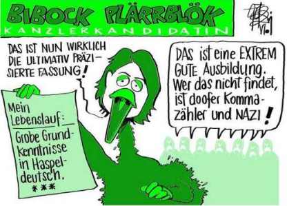 Das hatte vor allem deshalb keine internationalen Folgen, weil nicht nur die russische, sondern auch alle anderen Regierung der Welt wussten, dass die Dame schlicht infantil und nicht die hellste Kerze am Baum ist. Man nahm sie nirgendwo ernst. (Anm. Dikigoros: Nun ja, alle Welt - mit Ausnahme der verdummten BRDDR-Untertanen - wußte, daß Plärrblök nicht mal einen ordentlichen Hilfsschul-Abschluß geschafft hatte, und daß all ihre tollen Bildungsabschlüsse