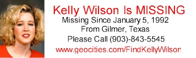 | Please download a banner and link back to Kelly's site. The more circulation that Kelly Wilson gets through other websites could help generate a lead to help her case. To obtain a banner, simply right click on the banner you wish to take and choose the location you wish to save it to on your computer. | ||||||||||||||||||||||||||||