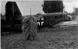Nedskutt tysk Ju-52-fly p� presteg�rdsjordet,