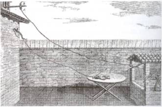 disecada con el hilo conductor de un pararrayos y ató un alambre a las patas