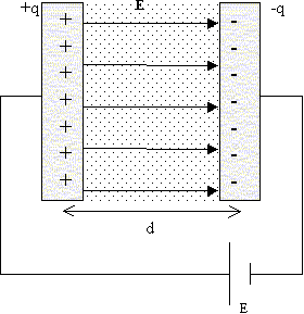 Capacitor é um dispositivo útil para armazenar carga elétrica e energia. Consiste em duas placas isoladas uma da outra. Quando as placas estão ligadas a um carregador, por exemplo, uma bateria, há uma transferência de carga de um condutor para outro até que a diferença de potencial entre os dois condutores, (em conseqüência das cargas serem iguais e opostas), seja igual à diferença de potencial entre os terminais da bateria: [Apostila de Física Experimental II - UEPG]