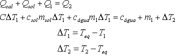 As quantidades de calor do sistema em equilíbrio dentro de um calorímetro pode ser dado como: