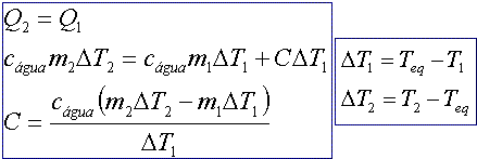 Qcal = (m2 + m1) cágua DT + C DT