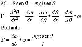 Onde M é o momento de força que causa a rotação e G é a aceleração angular. Para o pêndulo físico,