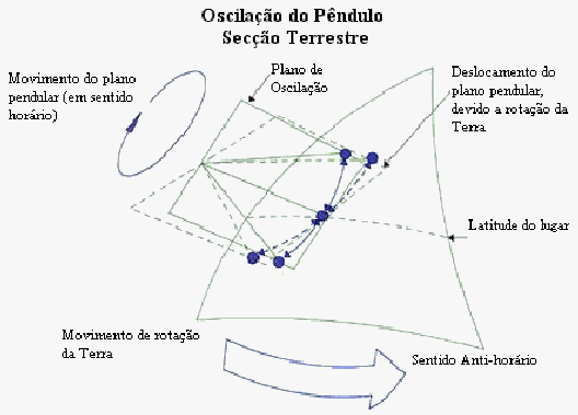 Após sucessivas oscilações, tornou-se claro que o plano do movimento do pêndulo movia-se no sentido dos ponteiros do relógio, quando visto de cima. Numa hora, o pêndulo mudou seu plano de oscilação de mais de 11 graus. Uma volta completa foi concluída em aproximadamente 32 horas. Em cada oscilação o plano movia-se 3 mm, medidos no círculo de areia.