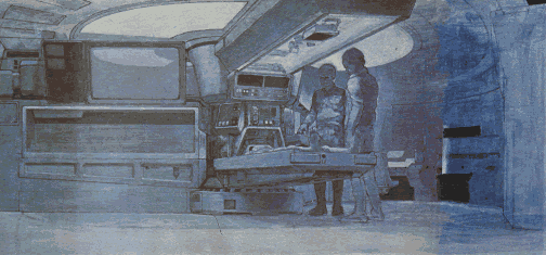 DAN O'BANNON: What really bothered me about the whole idea of this thing running around on the ship was why they did'nt just kill it. Why did'nt they spear the goddamn thing, or shoot it with some kind of gun that would'nt go right through it and penetrate the hull? Or why couldn't they get a bunch of long pointed shafts and drive it out the airlock? I mentioned that to Ron Cobb, and he said, 'Why not give it extremely corrosive blood that would eat through the hull?' And I said, 'Well, that doesn't make much sense; but it would certainly make it very, very difficult for them to deal with it on board the ship' - so I put it in.