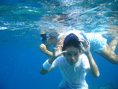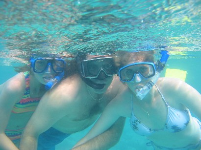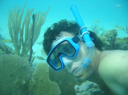 | SNORKELING IN THE VIRGIN ISLANDS While living in St. Thomas, US Virgin Islands, during 2002-2003, we enjoyed snorkeling at many lovely bays and offshore cays, in St. Thomas, St. John, St. Croix and Tortola. In June 2003, we were joined by Rob (Floyd's younger brother), his wife Helen, and their daughter Fiona. Here are some underwater photos of us all. |