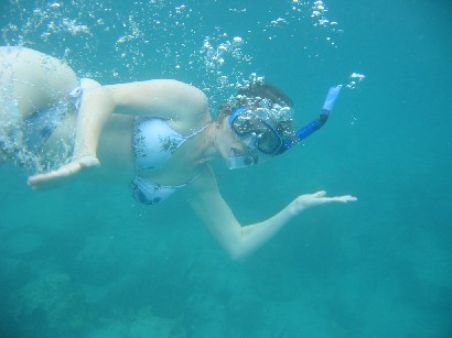 | Helen slices through the depths at Haulover Bay, St. John. |