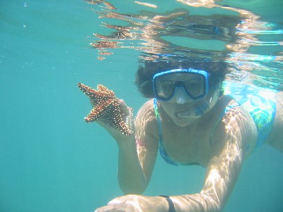 | Marta finds a sea star at Cas Cay, St. Thomas. |