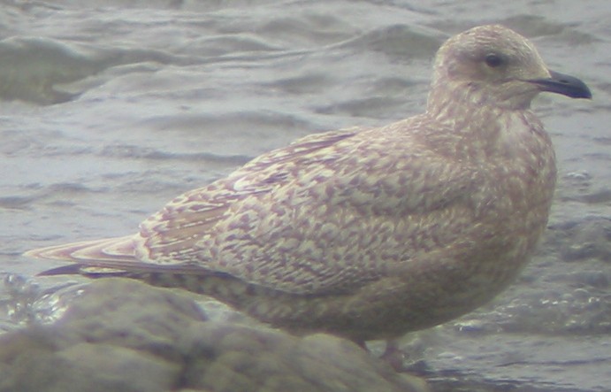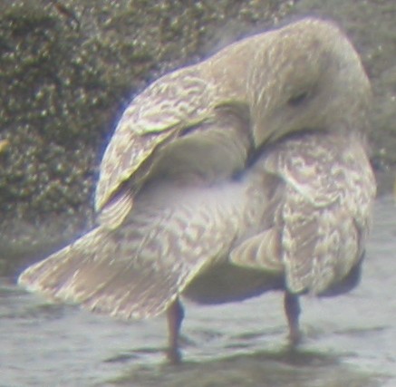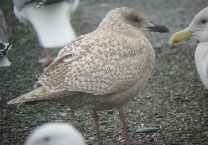 | Presumed 1st-cycle "KUMLIEN'S" ICELAND GULL (Larus glaucoides kumlieni) at a small beach in Carmet and also 6 miles to the north at the mouth of the Russian River, Goat Rock State Beach, Sonoma County, CA, 13 January 2008. Photos � Floyd Hayes. For photos of a similar bird (4th accepted record for California) at Clearlake Park, Lake County, CA, click here. |