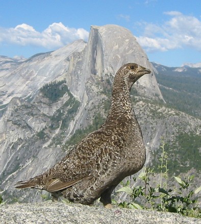 | My best bird photograph: Sooty Grouse (Dendragapus fuliginosus) at Glacier Point, Yosemite National Park, 6 August 2006. For info on my birding adventures, click here. |