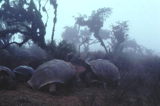 | Gal�pagos Tortoise (Geochelone elephantopus vandenburghi) males in combat. Volc�n Alcedo, Gal�pagos Islands, June 1984. |