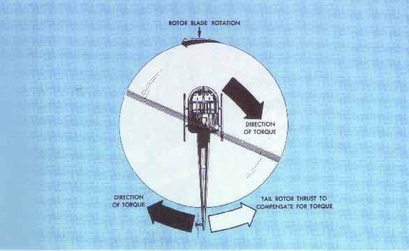 Torque.- Newton's third law of motion states, "To every action there is an equal and opposite reaction." As the main rotor of a helicopter turns in one direction, the fuselage tends to rotate in the opposite direction (fig. 12). This tendency for the fuselage to rotate is called torque. Since torque effect on the fuselage is a direct result of engine power supplied to the main rotor, any change in engine power brings about a corresponding change in torque effect. The greater the engine power, the greater the torque effect. Since there is no engine power being supplied to the main rotor during autorotation, there is no torque reaction during autorotation.