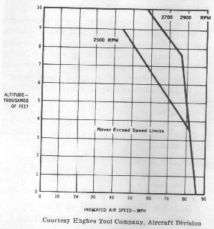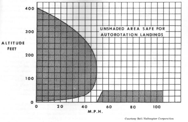 Limiting heights and corresponding speeds for safe landing after power failure are generally incorporated in a chart called the Airspeed vs. Altitude Limitations Chart, but often referred to as the Height-Velocity Curve or Diagram. This chart generally appears in the performance section of the helicopter flight manual, but occasionally may be found in the Operating Limitations section. Figures 43 and 44 represent such charts. These charts will be discussed in detail in a latter chapter.