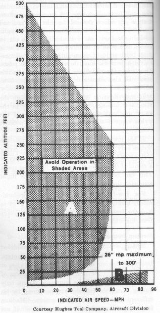 autorotative landing. The altitude-airspeed combinations that should be