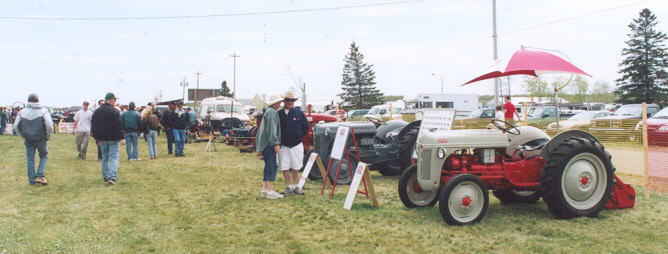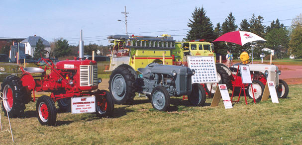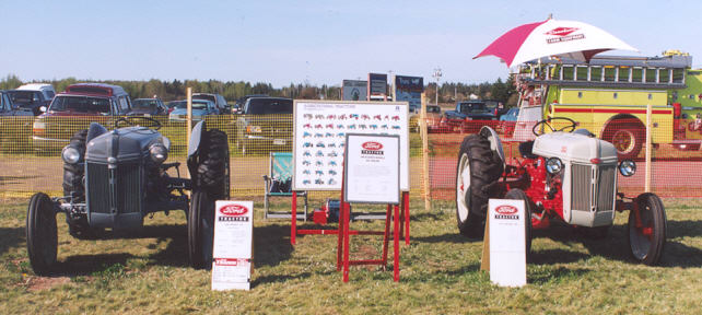 | Only 3 tractors at the Debert show for May 2002. All were nicely restored. Lt. to Rt. Frank Hoyt's 1957 Farmall 130; Richard Giddens' 1943 Ford 2n & 1951 Ford 8n. |