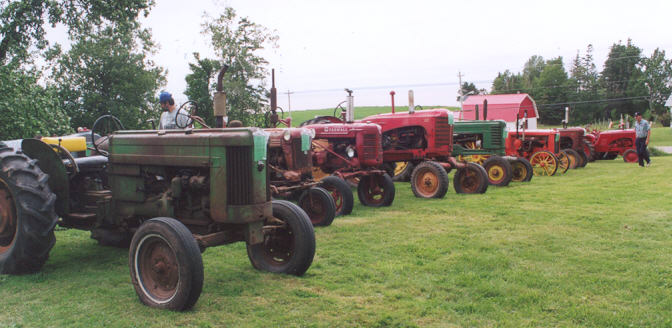 | Some more of Francis VerStratten's great tractor collection. The first six are: 1957 John Deere model 320V; 1940 Farmall Cub; 19?? Farmall; 1952 Massey Harris model 30; 1951 John Deeere model B; 1931 Allis Chalmers model U |