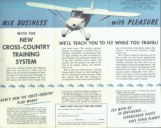 In 1952, I was a child, and I sent off for a brochure from Piper Aircraft concerning their latest product. Many times I read the pamphlet and dreamed of owning one of those airplanes. I wished that I had a Piper Pacer and dreamed about flying in the beautiful blue skies above the Virginia farm I was living on during the summer season. I wished so hard it hurt. The Pacer was the ultimate in light aircraft in its day. At least that was my opinion. The aircraft was fabric covered, but in those days most light aircraft were built using the steel tube and fabric method of construction. After a few thousand hours and many years of flying I finally got a ride in my childhood favorite airplane - the Piper Pacer. It was Charleston SC, one 4th of July in the late 1960s. A childhood dream came true -- I flew in a Piper Pacer. What happened that day was not something caused by any action or inaction by Piper Aircraft, but was caused by an Aircraft Inspector's greed. The Aircraft Inspector signed the aircraft as Airworthy to please a woman and to make a little money. And he damn near killed us. This story is far to long to recount here, but we can have the high lights. |