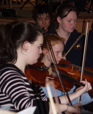 violinist Sasannah T. lines up with Sydney Youth Orchestra performers