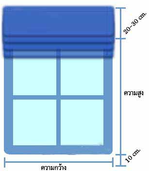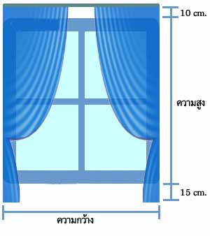 - ม่านจีบ โดยปกติจะบวกเพิ่มจากขอบวงกบด้านบนอีก 10 ซม.