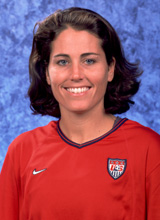 Julie is one of those players ya gotta love. She is so funny with her "No donuts no love". She is awesome in the midfield and I think she runs funny (when she runs she always has her "thumbs up" & swings her arms all over the place). She is definitely one of the coolest on the team my favorite player. I love the whole team though, so it is very hard to have a favorite... anyway, GO JULES! :) |