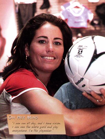 -She is the first woman to receive the Fifa Fair Play award in 1997. She made a well-publicized trip to Pakistan on behalf of her shoe sponsor, Reebok to see for herself that the business of making shoes and soccer balls was not being done through child labor.