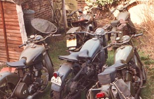 This photo was taken on the Lincolnshire film set of "The Last Days of Patton" starring George C. Scott, in June 1985. We are General Patton's Military Police personal security squad.I'm the lean/mean one on the right of the picture with my Harley-Davidson WLA. We got the job through Tony Oliver who is TLO Film Services