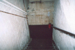 Our entrance was by narrow iron staircase at the end of the corridor and would have been the emergency exit. At the end of the corridor is another iron staircase, the exit to the surface is sealed but the staircase to the lower floor is intact.