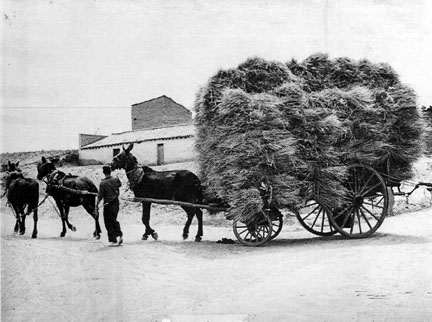 | Una galera cargada de mies se dirige hacia la