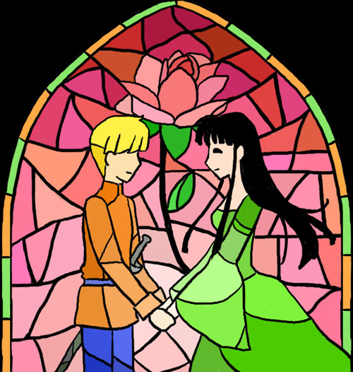 Title: Stained Glass Comments: This idea has probably been done before, but... oh well. It's Numbuh 4 and Numbuh 3 in a stained glass scene that's inspired by Disney's Beauty and the Beast (at least it seems a lot like that). Ika cut the background up into pieces so that it would look like stained glass (woo, thanks a bunch!). And if you look carefully, Numbuh 3 actually is slightly taller than Numbuh 4 (like many others, I have problems making their heights accurate ^^;;;).