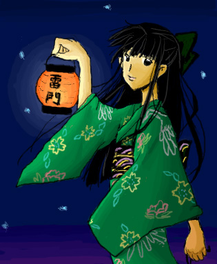 Title: Numbuh 3 In A Kimono Comments: A long, long time ago, I said that I might redo the old "Numbuh 3 In A Kimono" picture, so I did. I redid it in anime style. I hope it looks better than the other one. Anyway, my favorite part of this picture is her lantern. The bluish fireflies were done by Ika since I was having a terrible amount of trouble on them.